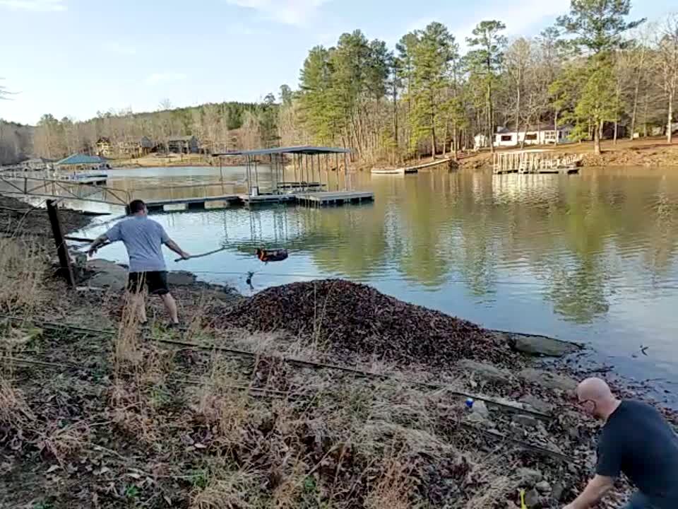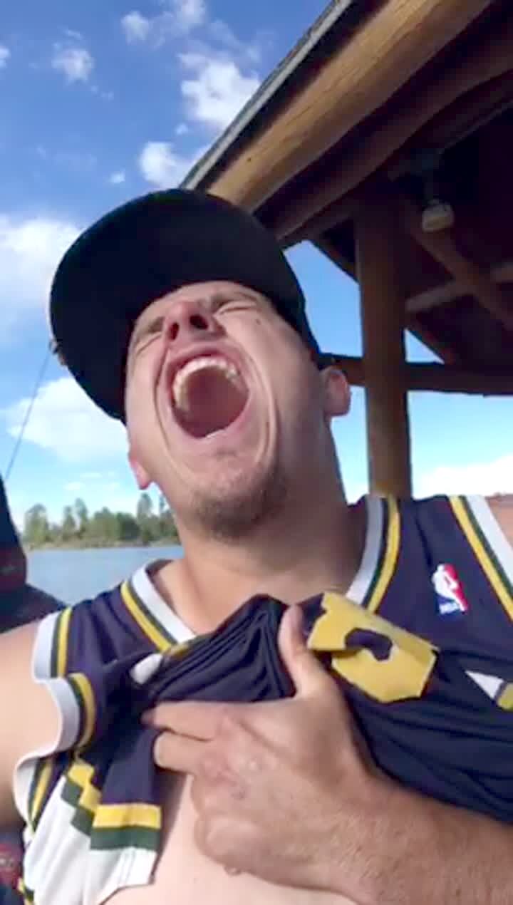 A man lifts up his shirt and lets a crayfish pinch his nipple while he's on a boat. Featured talent cleared (man being pinched).