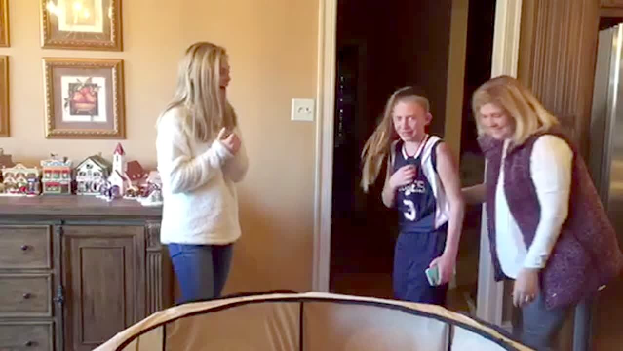 Teen sisters cry hysterical tears of joy when their parents show them their new puppy.