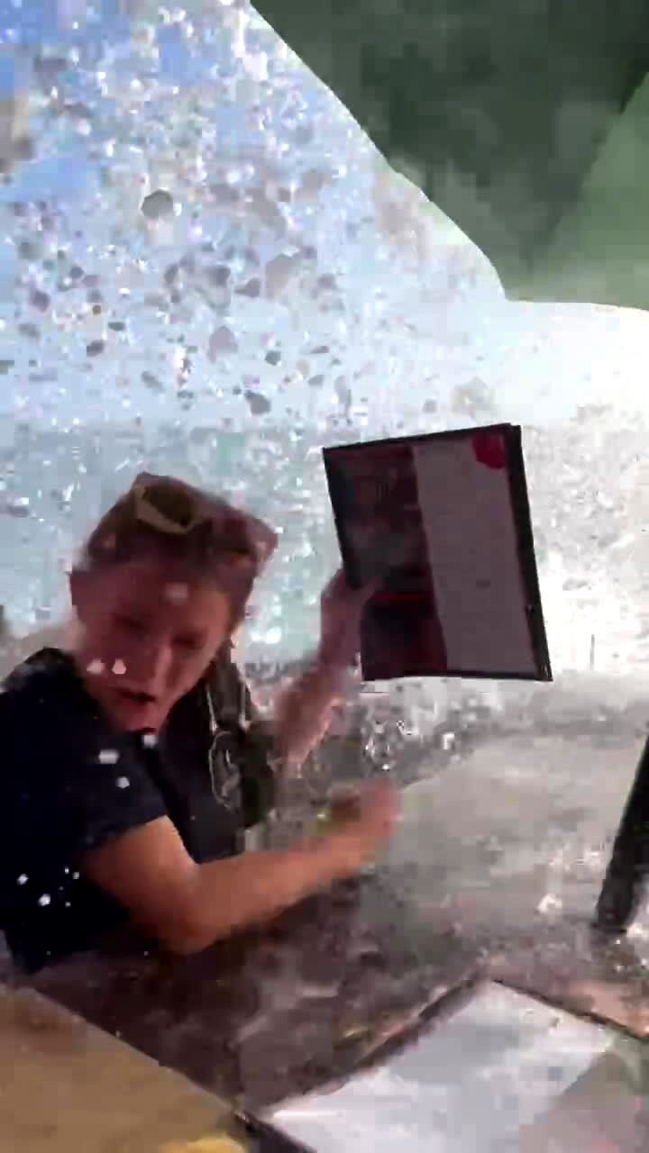 Outside Hvl2025 Outdoor Eat Bite Munch Chew Oops Shore Ocean Sea Startle Surprise Sand Vacation Wave Soak Drench Laugh Giggle Chuckle Amuse Entertain Beach Coast Travel Restaurant Patio Menu