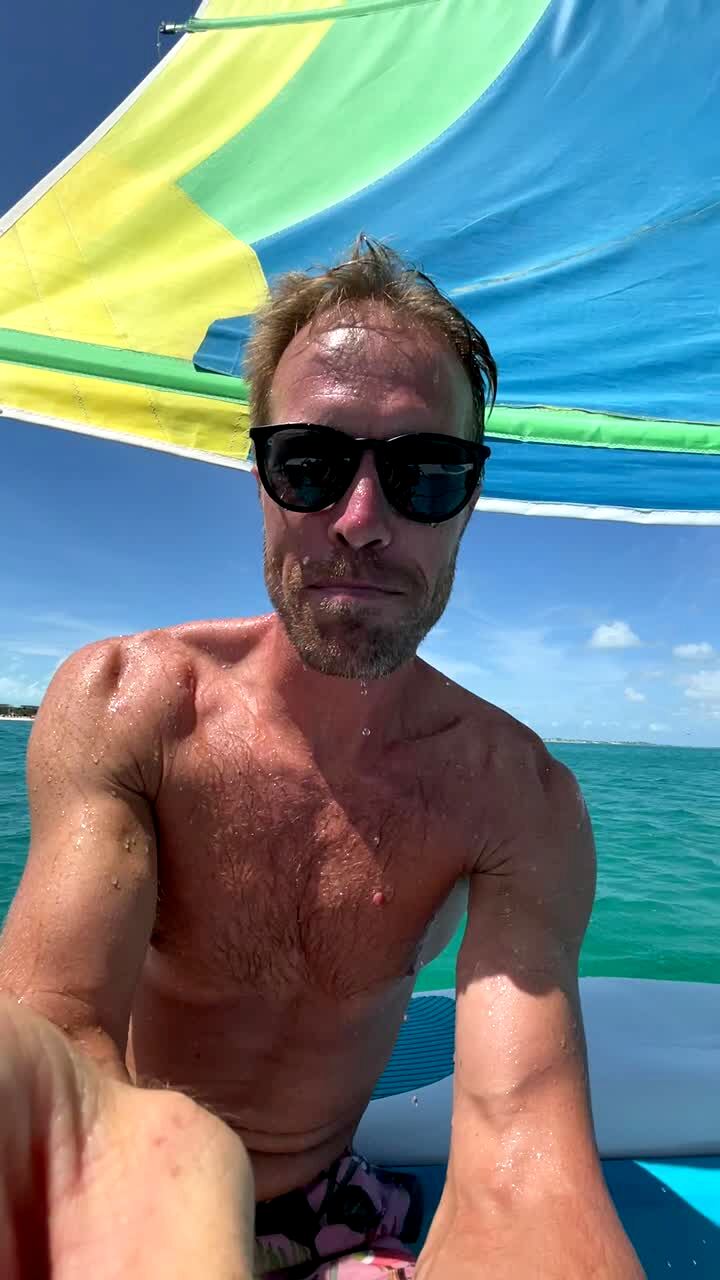 A man and a woman sail on vacation, then the boom of the sail hits the woman in the face.
