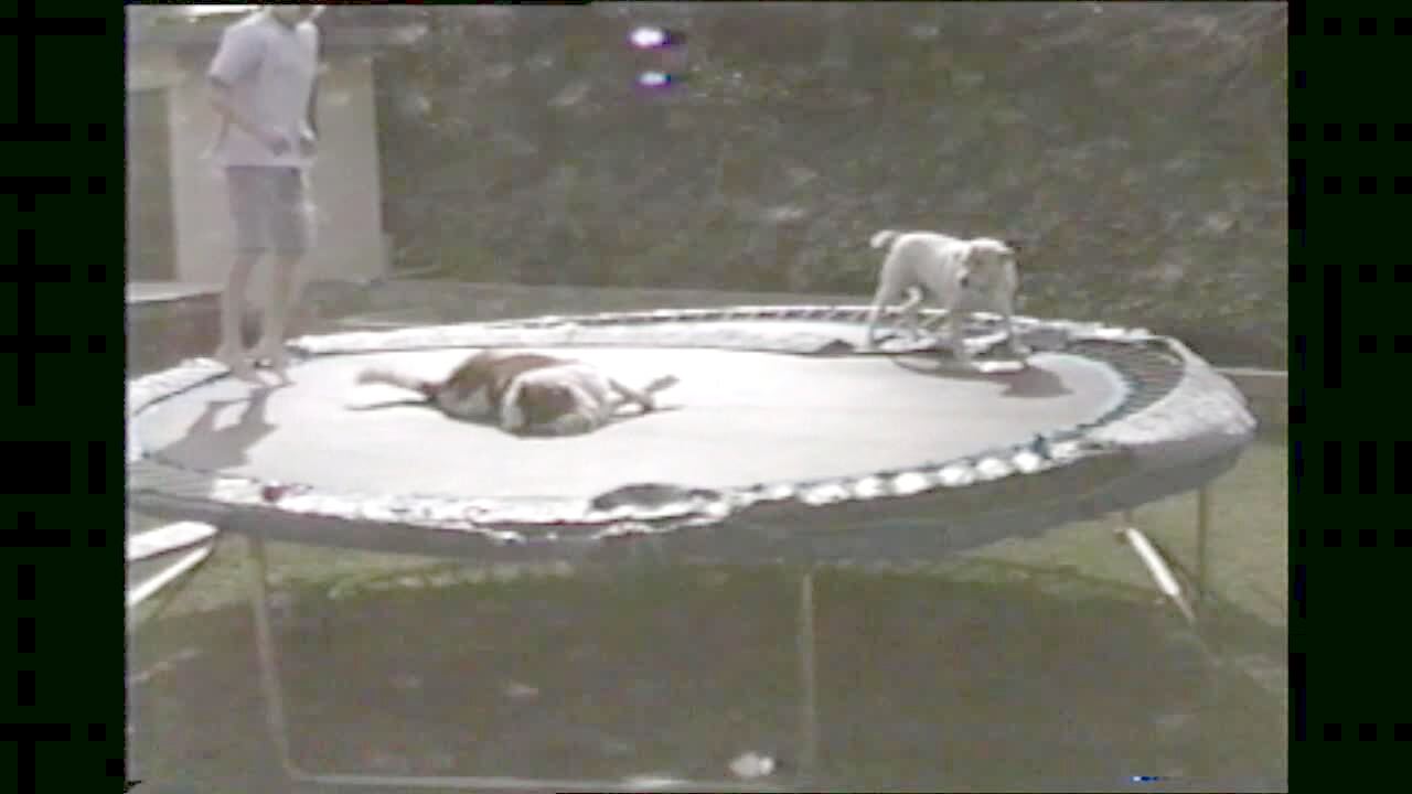 Christmas Dog. Woman in bed is surprised by dog, which she thinks is a rat.